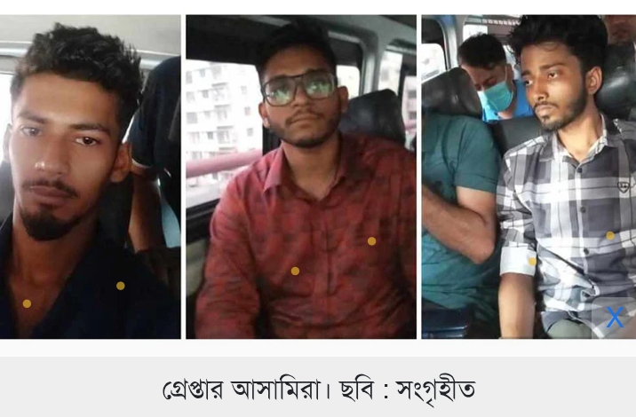 প্রধান অভিযুক্ত সোয়েব রহমান জিশান বাগেরহাটের মোড়লগঞ্জ থানার ফুলহাতা গ্রামের মো. মিজানুর রহমান খানের ছেলে। গ্রেপ্তার অন্যরা হলেন- বরিশাল সদর উপজেলার চহটা গ্রামের মো. সাখাওয়াত হোসেনের ছেলে মো. রাইসুল ইসলাম (২১) ও একই উপজেলার রাজ্জাকপুর গ্রামের মো. নুরুল আমিনের ছেলে মো. কাউসার হোসেন।